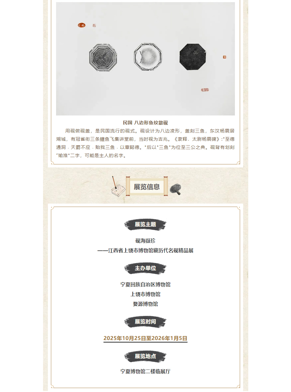 【展览资讯】“砚海撷珍——江西省上饶市博物馆藏历代名砚精品展”在宁夏博物馆开展